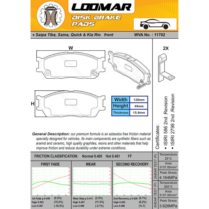 دستهبندی: لنت ترمز خودرومحل قرارگیری: مناسب برای چرخ جلوجنس: فلزمناسب برای خودرو: تیبا , ساینا , کوییک , کیا ریو