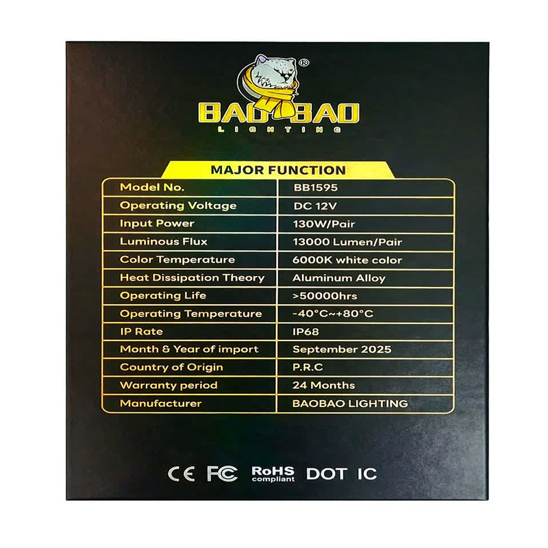 هدلایت لامپ خودرو بائو بائو مدل BB1595 پایه H1 بسته 2 عددی