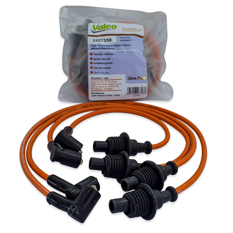 وایر شمع تقویتی پژو 1800 ولئو دارای سری اتصال تمام برنجی، روکشهای سیلیکونی مقاوم در برابر حرارت، مقاومت صفر کابل ها و رشته های کابل 30 رشته ای میباشد.