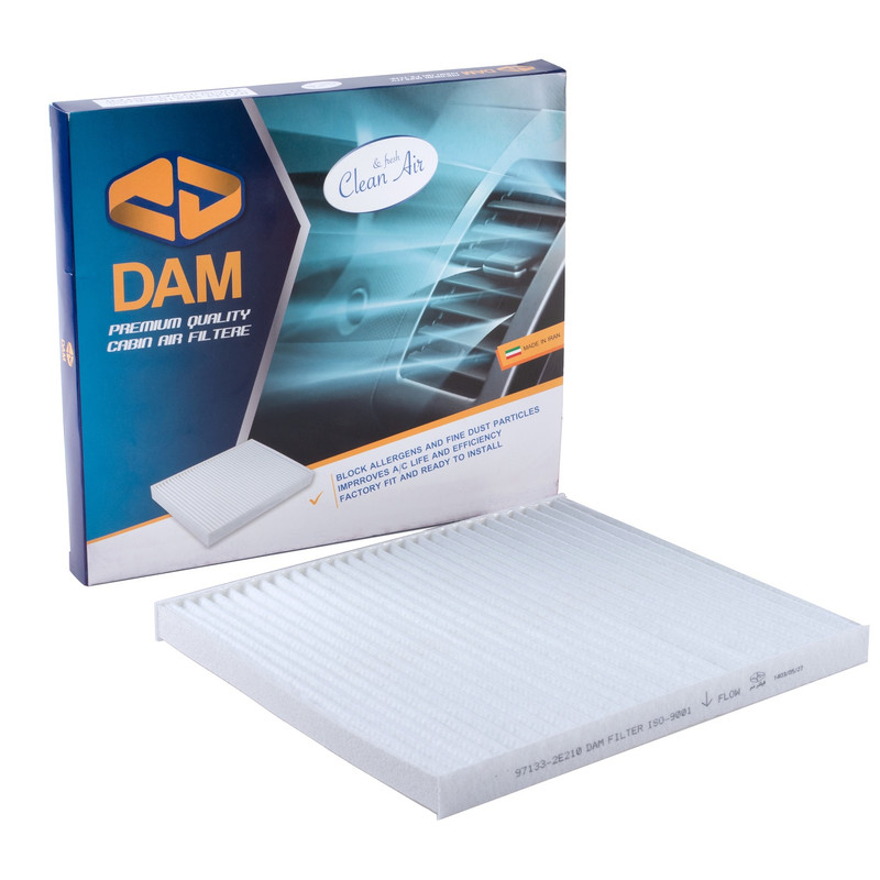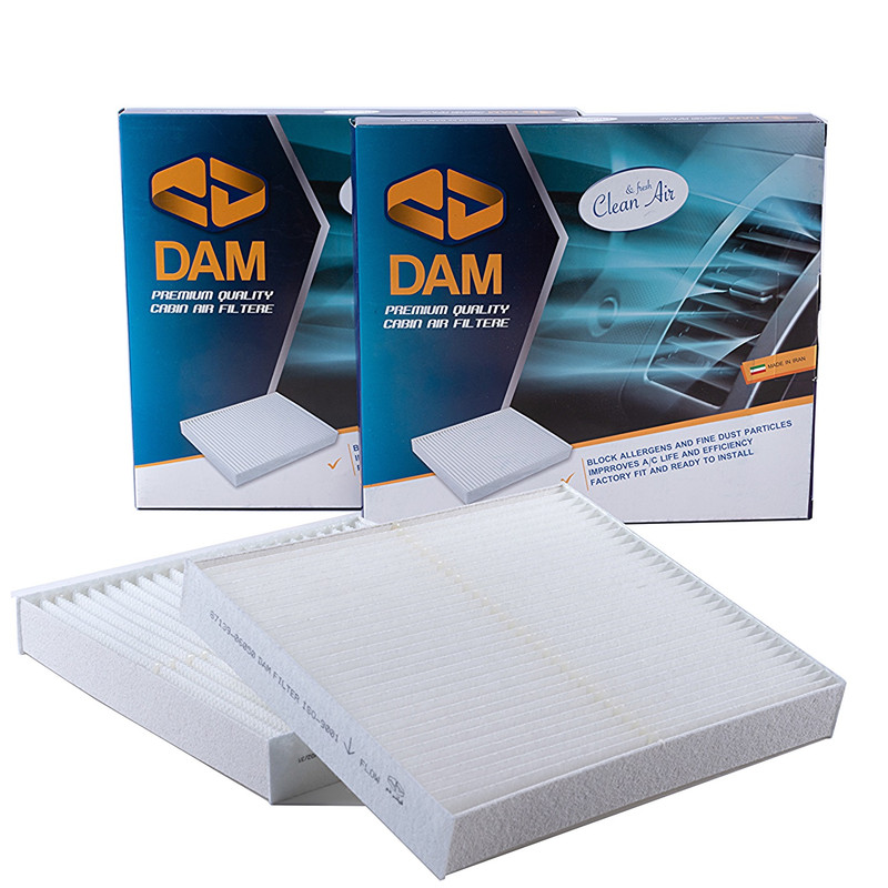 دم فیلتر، نامی آشنا و معتبر، در صنعت تولید قطعات مصرفی خودرو می باشد. تمرکز و تخصص گروه فیلتر دم ، بر روی تولید فیلتر هوای کابین انواع خودرو های ایرانی و خارجی است و در تولید فیلتر کابین خودرو از مرغوب ترین و بهترین مواد اولیه استفاده شده است. کیفیت بالای تولید فیلتر خودروی Dam filter موجب دریافت گواهینامه بین المللی ISO 9001 شده و اطمینان ،تضمین، کیفیت و سلامت هوای داخل کابین خودروی شما را دارا هستیم. عملکرد و کاربرد فیلتر کابین در خودرو: فیلتر کابین دم قابلیت جذب ذرات ریز معلق در هوا، مانند: گرد و غبار، دوده های خودرو های دیزلی، گرده گیاهان و... را دارد. فیلتر کابین خودرو یک فیلتر کوچک پلیسه دار است که از پنبه کاغذی، فیبر و مواد دیگر ساخته شده است. این فیلتر قبل از اینکه هوا به محفظه مسافر وارد شود، آلودگیهای هوای خارج را به دام میاندازد و از ورود آنها به داخل وسیله نقلیه جلوگیری میکند. پس در تمیز بودن این فیلتر اطمینان حاصل بفرمایید. فیلتر کابین با الیاف توری، استحکام بیشتر، هوادهی بهتر، فیلتراسیون و جذب آلایندگی بالاتری نسبت به فیلتر کابین با الیاف ساده دارند.