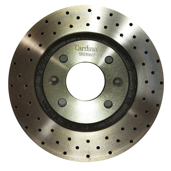 دیسک ترمز کاردینال مناسب پژو 206 تیپ 5 و پژو 207 که روی سطح دیسک سوراخ هایی وجود دارد که دلیل اصلی وجود این سوراخ ها عبور آسان دود و هوای گرم که از اصطکاک لنت و دیسک تولید شده میباشد و علاوه بر آن سوراخ های دیسک ترمز باعث میشود که دیسک ترمز خنک تر شود و مانند سیستم تهویه عمل کند