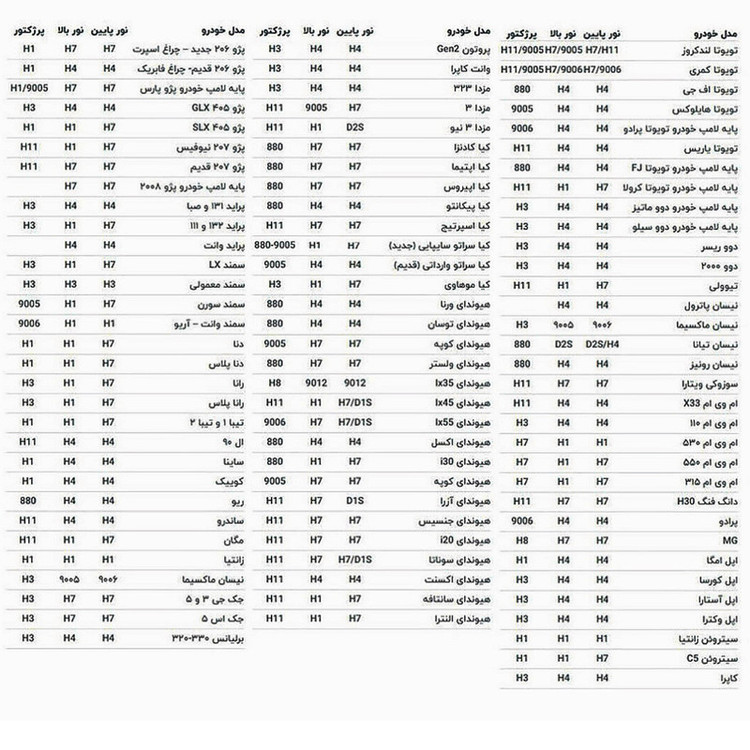 مناسب برای خودرو: پژو 405 , ام وی ام 110 , برلیانس H320 , برلیانس H330 , رنو تندر پلاس , رنو ساندرو , رنو ساندرو استپ وی , سایپا پراید 131 , سایپا پراید 151 (وانت) , ساینا , کوییک , مزدا 323 , هیوندای اکسنت , هیوندای توسان , هیوندای اکسل